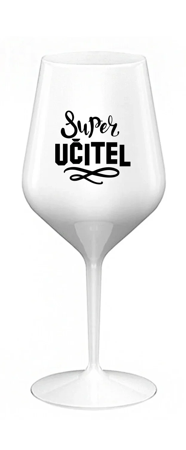 SUPER UČITEL - bílá nerozbitná sklenice na víno 470 ml