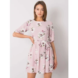 Světle fialové šaty s květinovým potiskem.