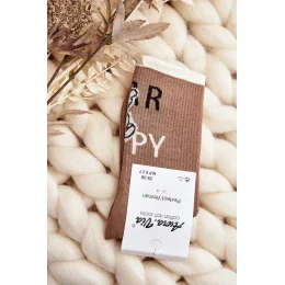 Světle hnědé dámské bavlněné ponožky s nápisem a medvídkem