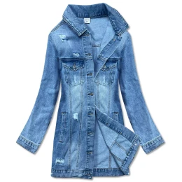 Světle modrá dlouhá džínová bunda (POP7021-LK) - P.O.P.SEVEN