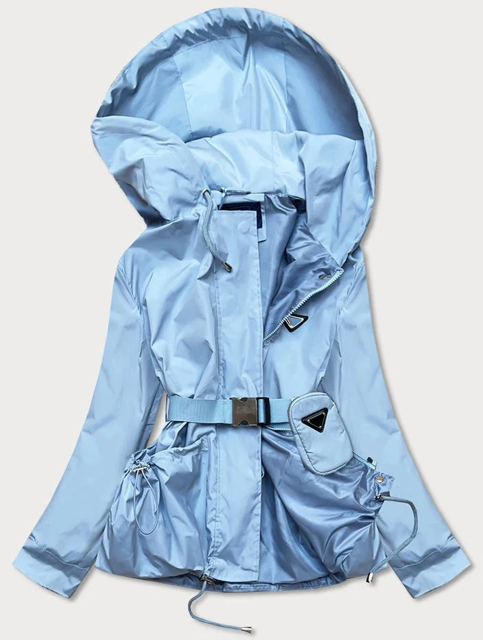 Světle modrá krátká dámská bunda s páskem (AG3-03)