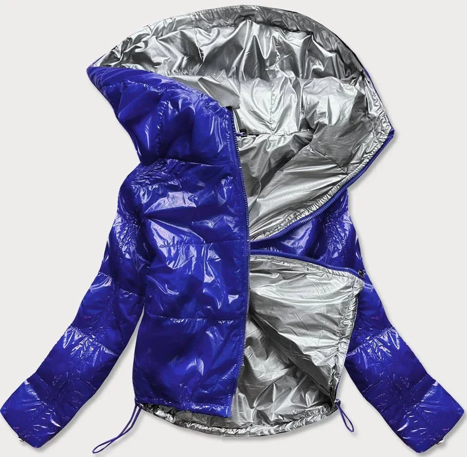 Světle modrá lesklá prošívaná dámská bunda s kapucí (B9560)