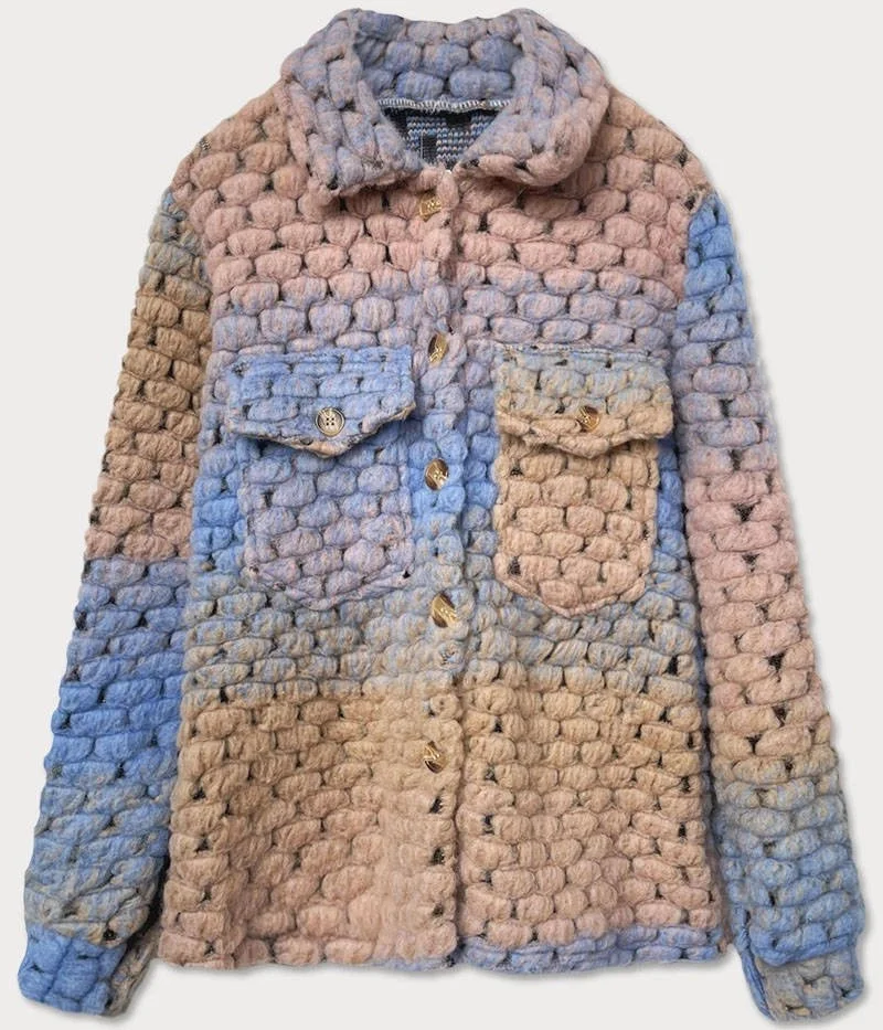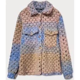 Světle modro-béžová dámská košilová bunda s límcem (2453)