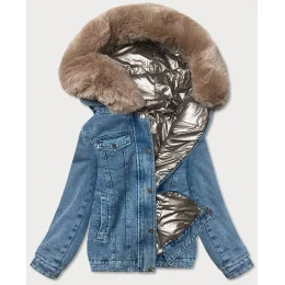 Světle modro-béžová oboustranná džínová bunda pro přechodné období (B9730-50012)