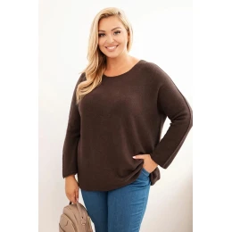 Svetr dámský plus size s lodičkovým výstřihem hnědý