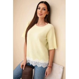 Svetr dámský s krátkým rukávem a krajkou žlutý