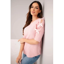 Svetr dámský s krátkým rukávem a ozdobnými mašlemi tmavě pudrově růžový