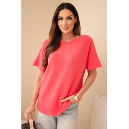 Svetr dámský s krátkým rukávem volného střihu malinový