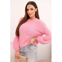 Svetr dámský z baby alpaky s bufí rukávy jasně růžový