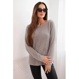 Svetr dámský z měkké pleteniny s kulatým výstřihem hnědý