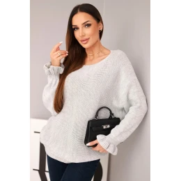 Svetr dámský z mohairu s nařasenými rukávy a výstřihem na zádech světlá šedá