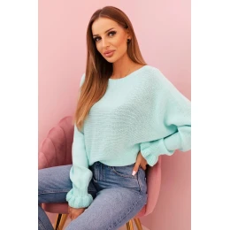 Svetr dámský z mohéru s nařasenými rukávy a výstřihem na zádech mátový