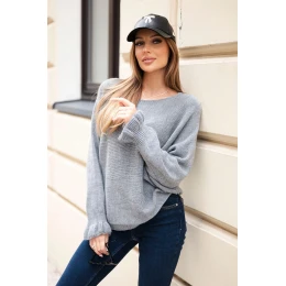 Svetr dámský z mohéru s nařasenými rukávy a výstřihem na zádech šedý