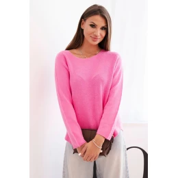 Svetr dámský z viskózy s dlouhým rukávem a kulatým výstřihem růžový