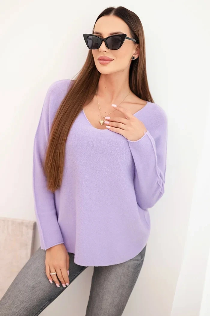 Svetr dámský z viskózy s výstřihem do V světle fialový