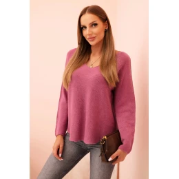 Svetr dámský z viskózy s výstřihem do V tmavě růžový