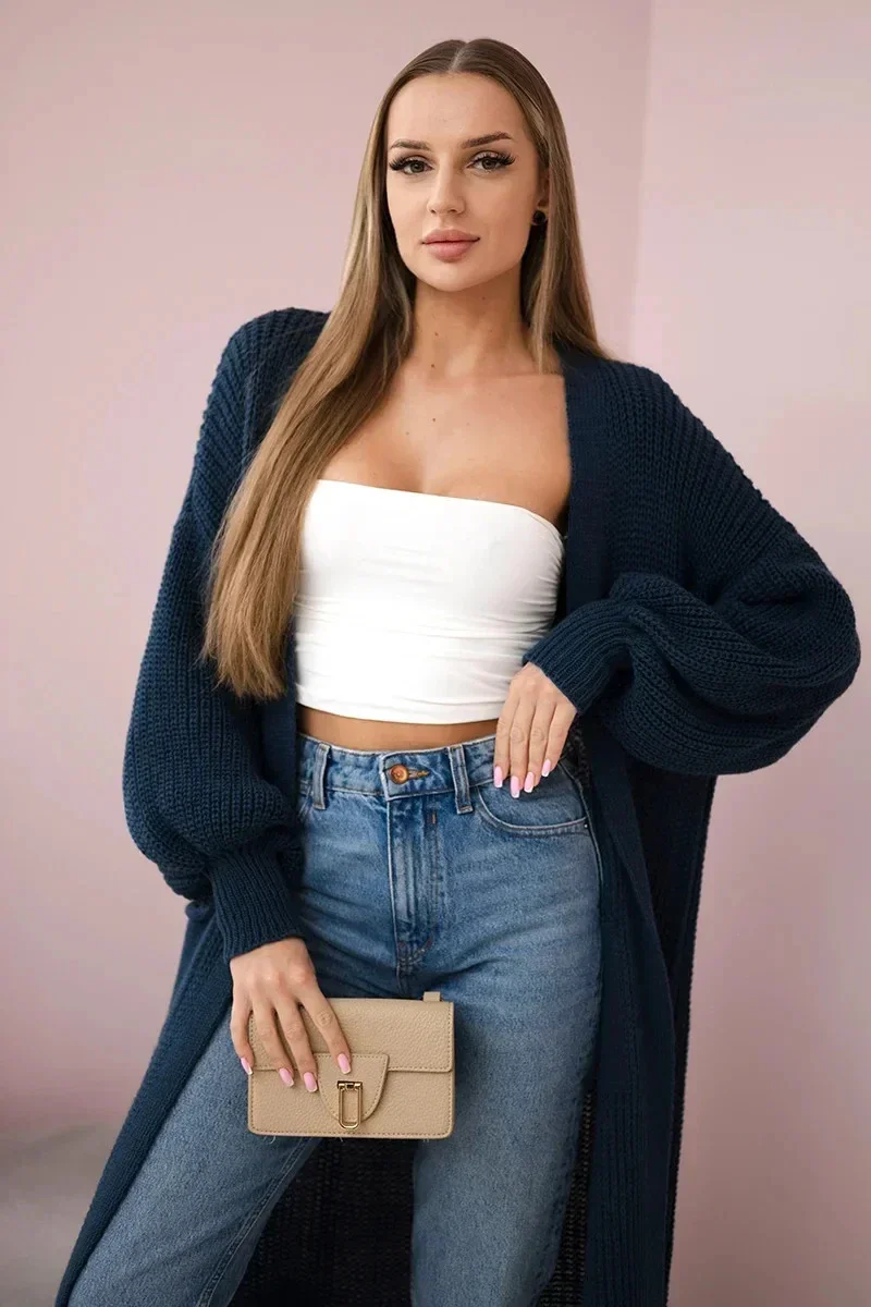 Svetr dlouhý kardigan Tmavý denim