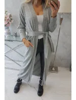 Svetr dlouhý svetr vázaný v pase šedý