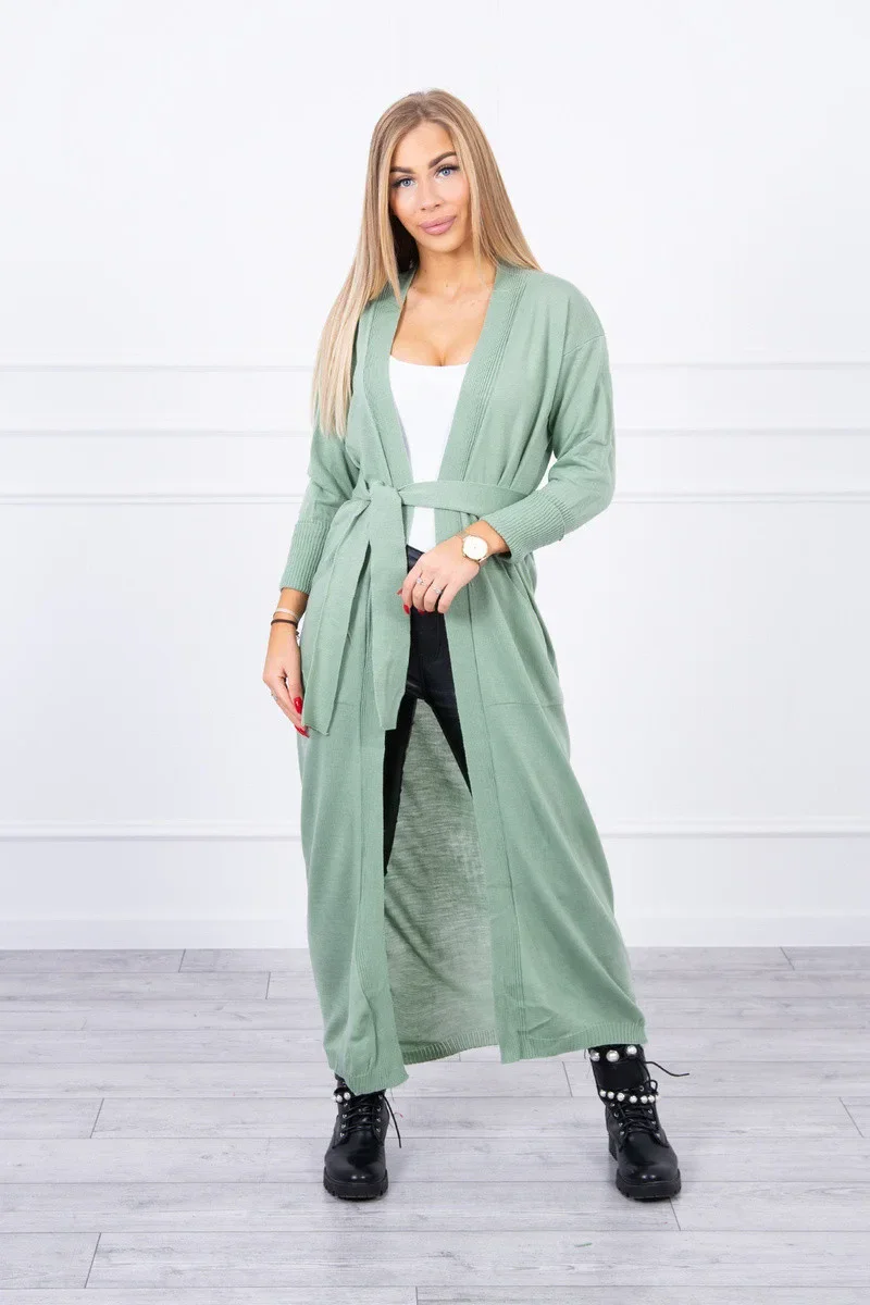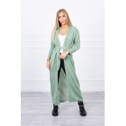 Svetr dlouhý svetr vázaný v pase tmavě mátový