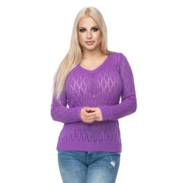 Krátký svetr s prolamovanou vazbou. Svetr s motivem kosočtverců z měkké příze.