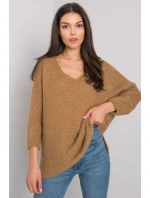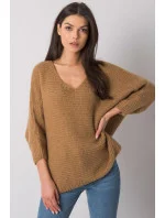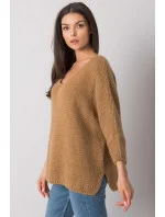 Velbloudí dámský oversize svetr s dlouhými rukávy.