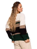 Krátký dámský svetr vyrobený z příze s proužkovaným vzorem, charakterizující se zavinovacím střihem. Hluboký výstřih přední a zadní části dodává eleganci a jemnému kouzlu. Tento stylový svetr je ideální volbou na každý den nebo na speciální příležitosti. Navržen a ušit v Polsku, spojuje vysokou kvalitu zpracování s módním designem.