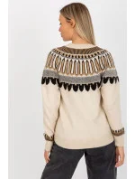 Dámský svetr s dlouhými rukávy a stojáčkem. Svetr se zajímavým ozdobným vzorem.