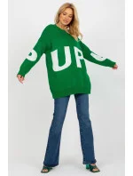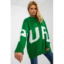 Dámský svetr prodlouženého střihu s dlouhými rukávy a kulatým výstřihem. Ozdobné nápisy na přední straně a rukávech.