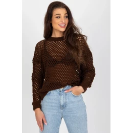 Dámský letní prolamovaný svetr s dlouhými rukávy a kulatým výstřihem.