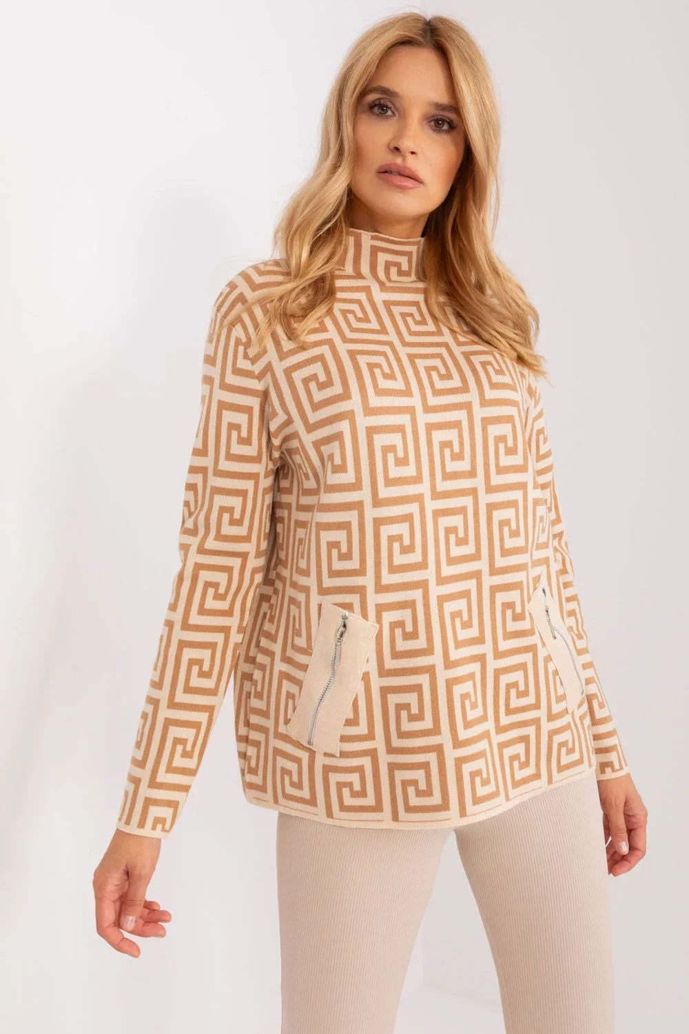 Tento dámský svetr je ideální volbou pro každodenní nošení do práce. Jeho dlouhý rukáv a poloviční rolák vás udrží v teple a pohodlí i v chladnějších dnech. Svetr má geometrický vzor, který mu dodává originalitu a styl. Je ideální volbou pro ty, kteří ocení módní vzhled. Délka svetru je standardní, díky čemuž se hodí k mnoha různým stylům. Kapsy na zip jsou navíc praktickým prvkem pro uložení drobných předmětů. Svetr je díky svému ležérnímu stylu vhodný na každodenní nošení i do práce. Dokonale kombinuje pohodlné nošení s módním vzhledem, což z něj činí nezbytný kousek v dámském šatníku.