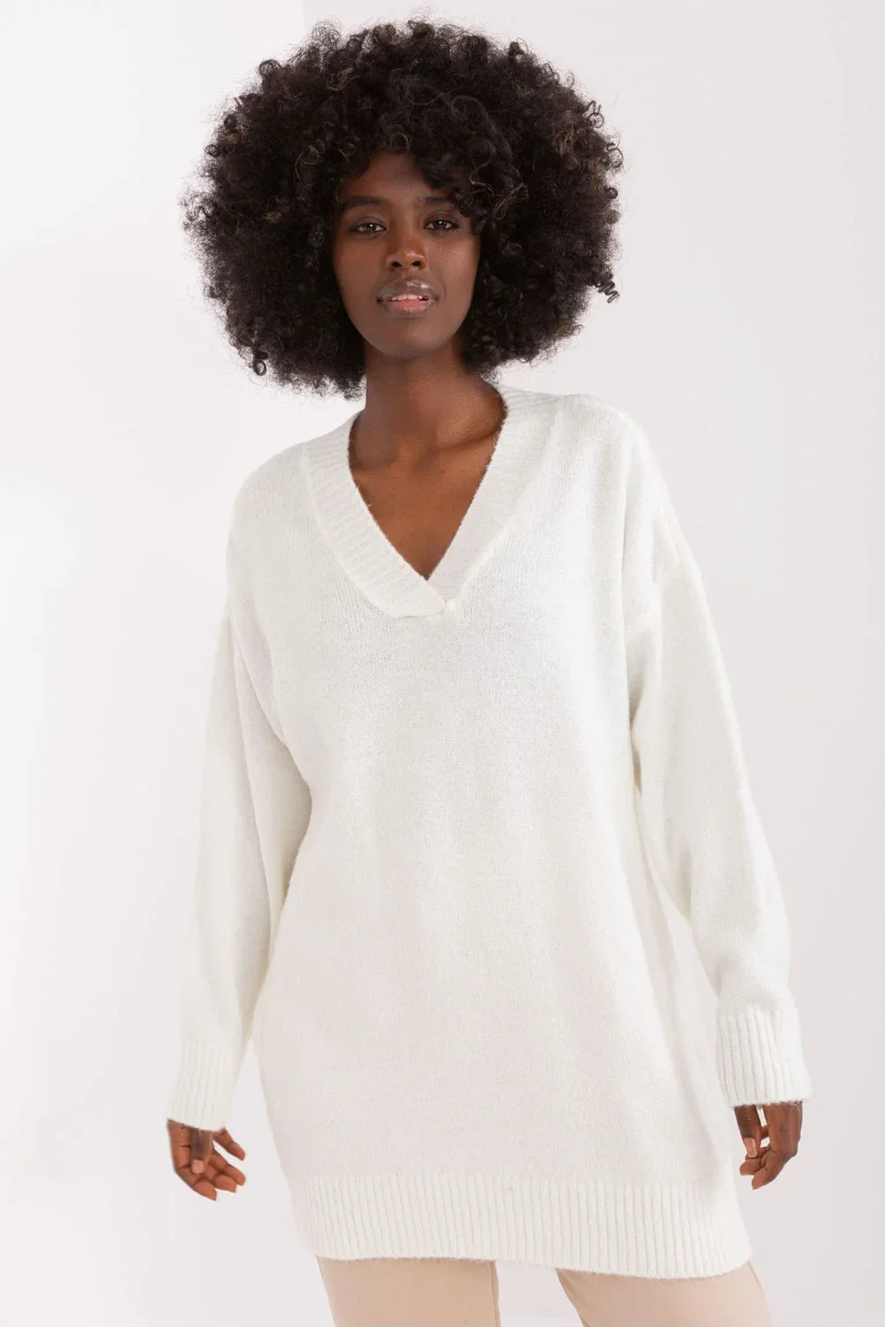 Tento svetr je esencí elegance a nadčasové třídy, která se vyznačuje moderním pojetím stylu. Tento svetr představuje klasický střih, který nikdy nevyjde z módy. Je ideální volbou pro ženy, které ocení nadčasovou eleganci. Výrazná hladká struktura tkaniny dodává svetru minimalistický vzhled. Je ideálním základem pro nejrůznější stylizace. Dominantním materiálem je vysoce kvalitní akryl, který zaručuje pohodlí, měkkost a odolnost a zároveň se snadno udržuje. Svetr má mírně prodlouženou délku, která mu dodává jemný, moderní nádech. Je ideální volbou pro ženy, které ocení volnost pohybu a stylové pohodlí. Dlouhý rukáv zaručuje ochranu před chladem a srdíčkový výstřih dodává svetru ženský nádech a jemně odhaluje krční část. Tento svetr je určen pro ženy, které chtějí do svého šatníku zavést klasický kousek s moderním nádechem. Skvěle se bude hodit jak pro každodenní stylizaci, tak pro formálnější příležitosti a podtrhne individuální vkus a eleganci ženy, která jej nosí.