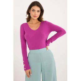 Dámský svetr casual ideální na každý den i do práce. Vyhotoven z vysokokvalitní směsi materiálů: viskózy, polyamidu a polyesteru, zajistí pohodlí nošení a trvanlivost. Hladký vzor a klasická délka z něj dělají univerzální kus oblečení. Svetr má dlouhý rukáv zakončený ozdobnými knoflíky na zápěstích, které dodávají jemný, elegantní akcent. Výstřih ve tvaru písmene V (serž) zdůrazňuje krk a celkově dotváří ženský charakter. Skvělá volba jak do kanceláře, tak na každodenní vycházky.