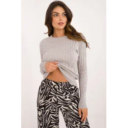 Představujeme dámský svetr v casual stylu, ideální pro různé příležitosti, od každodenních vycházek po pohodlné stylizace do práce. Vyroben z kombinace viskózy, nylonu a polyesteru, poskytuje měkkost a pohodlí nošení. Různorodá struktura materiálu mu dodává charakter a dělá ho výrazným v každé stylizaci. Svetr má standardní délku, dlouhý rukáv a kulatý výstřih, což ho činí univerzálním a snadno kombinovatelným s různými kousky oblečení. Je to ideální volba pro ženy, které si cení stylu a pohodlí v každodenním životě.