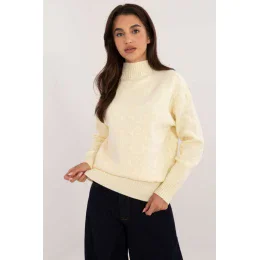 Ležérní svetr s polovičním rolákem, ideální pro každodenní nošení i do práce. Je vyroben ze směsi akrylu a polyesteru a zaručuje pohodlí a teplo. Různorodá textura tkaniny dodává svetru jedinečný nádech a odlišuje ho od klasických modelů. Svetr má standardní délku a dlouhé rukávy, takže je univerzální a ideální pro chladnější dny. Je skvělou volbou pro ženy, které ocení pohodlí v kombinaci s módním, ležérním stylem.