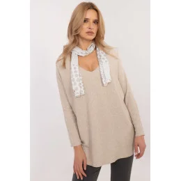 Elegantní dámský svetr s jemnou lesklou nití, který se hodí na každodenní nošení, do práce i na zvláštní příležitosti. Hladký vzor zdůrazňuje univerzálnost svetru, zatímco žebrovaná struktura dodává moderní styl a jemnou strukturu. Svetr je vyroben ze směsi viskózy a elastanu, poskytuje pohodlný střih a je mírně přiléhavý. Standardní délka a srdcový výstřih vytvářejí klasický vzhled, zatímco absence zapínání mu dodává ležérní eleganci. Dlouhý rukáv je ideální pro chladnější dny. Součástí balení je šála, která dokonale doplňuje styling.