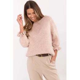 Stylový dámský svetr s ležérním charakterem, skvělý na každý den i do práce. Vyrobený z vysoké kvality směsi akrylu, vlny (lana), viskózy a polyamidu, je měkký, příjemný na dotek a pohodlný na nošení. Hladký vzor mu dodává elegantní jednoduchost a rukávy 3/4 ozdobené jemnou volánkou mu dodávají ženský šarm. Standardní délka mu umožňuje skvěle se kombinovat jak s džíny, tak s formálními kalhotami nebo sukněmi. Je to ideální volba pro ženy, které ocení styl, pohodlí a nadčasovou eleganci.