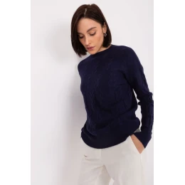 Dámský svetr s hlubokým výstřihem je skvělou volbou na každý den. Klasický kulatý výstřih a dlouhé rukávy zajistí pohodlí a univerzální styl. Model se vyznačuje dominujícím vzorem a různorodou strukturou materiálu, co mu dodává jedinečný charakter. Vyrobený z vysoce kvalitní směsi viskózy, nylonu a PBT, je měkký, elastický a příjemný na dotek. Ideální pro každodenní stylizace, skvěle se hodí jak k džínám, tak k elegantním kalhotám.