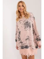 Dámský oversized svetr je ideální volbou pro každodenní nošení pro ženy, které ocení pohodlí a styl. Vyrobený ze směsi akrylu a vlny poskytuje teplo a měkkost, zároveň je lehký a prodyšný. Dlouhá délka a volný střih zaručují pohodlí nošení, zatímco dlouhé rukávy a kulatý výstřih zdůrazňují neformální charakter. Nerovnoměrný potisk dodává svetru původní vzhled a ozdobné dírky na lemích mu přidávají jemný dravý akcent. Ideální volba pro každodenní outfit, jak do džínů, tak do legín.