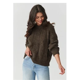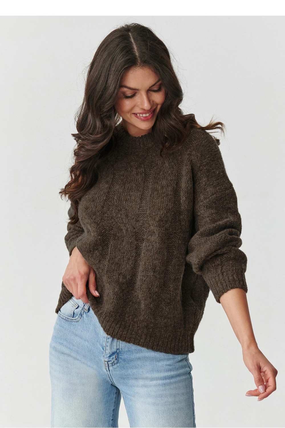 Svetr dámský s pleteným vzorem vyrobený z luxusní směsi kida moheru, vlny, polyamidu a akrylu je kombinací elegance, pohodlí a tepla. Velmi měkká a nadýchaná pletenina jemně obklopuje tělo, poskytujíc příjemné teplo v chladnějších dnech. Klasický střih s polokruhovým výstřihem a pleteným vzorem mu dodávají nadčasový šarm a dělají z něj skvělý doplněk aktuálním trendům. Volný střih zaručuje volnost pohybu a pohodlí nošení, a pružné manžety na rukávech a dole zajistí perfektní přiléhání. Jedná se o model, který snadno zkombinujete jak s džínami, tak s elegantní sukní.