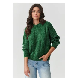 Svetr pro dámy s pleteným vzorem vyrobený z luxusní směsi kida, moheru, vlny, polyamidu a akrylu je kombinací elegance, pohodlí a tepla. Velmi měkký a chlupatý pletený materiál jemně obklopuje tělo, poskytující příjemné teplo v chladnějších dnech. Klasický střih s polokruhovým výstřihem a pleteným vzorem mu dodávají nadčasový šarm a dělají z něj skvěle padnoucí do aktuálních trendů. Volný střih poskytuje volnost pohybu a pohodlí nošení, a manžety na rukávech a na spodku zajišťují ideální přiléhavost. Tento model lze snadno sladit jak s džíny, tak s elegantní sukní.