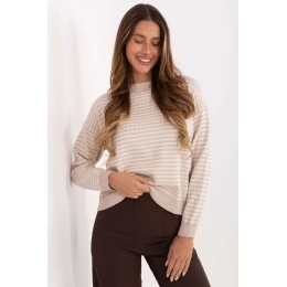 Elegantní a pohodlný dámský svetr s ležérním charakterem, ideální na každý den. Vyznačuje se pruhovaným vzorem, který mu dodává moderní a nadčasový vzhled. Vyrobený z vysoce kvalitní směsi viskózy, polyamidu a PBT, zaručuje pohodlí nošení, měkkost a odolnost materiálu. Model s standardní délkou, dlouhým rukávem a kulatým výstřihem se skvěle hodí do každodenních stylizací jak k džínům, tak k sukní. Je to univerzální volba pro ženy, které si váží pohodlí a stylu v jednom.