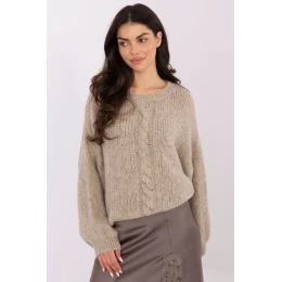 Volný dámský svetr je ideální volbou pro každodenní outfit a do práce, kde se hodí pohodlí a módní, ležérní charakter. Jeho volný střih poskytuje pohodlí při nošení a skvěle padne na postavě, nabízí mnoho možností stylizace. Model se vyznačuje různorodou texturou materiálu, která mu dodává výraznosti a jedinečného charakteru. Vyrobený z směsi akrylu, vlny, viskózy a polyamidu, je měkký, příjemný na dotek a dostatečně teplý, ideální na chladnější dny. Svetr má standardní délku, dlouhý rukáv a kulatý výstřih, co zdůrazňuje jeho klasický, ale moderní tvar. Další výhodou jsou nafouklé rukávy, které dodávají celku lehkou, módní eleganci. Model nemá zapínání, obléká se přes hlavu, což zdůrazňuje jeho ležérní charakter. Je to skvělý návrh pro ženy, které ocení styl, pohodlí a decentně výrazné detaily.