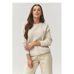 Elegantní dámský svetr s kulatým výstřihem je ideální volbou pro ženy, které oceňují spojení jednoduchosti, pohodlí a elegance. Vyrobený z měkké a příjemné při dotyku příze poskytuje pohodlí po celý den a skvěle se hodí do chladnějších dnů. Volný střih jemně obepíná postavu, zatímco jemně spuštěné ramena a široké rukávy dodávají celku moderní a trendy charakter. Tento model skvěle vypadá jak ve spojení s džínami, látkovými kalhotami, tak i s midi sukní, ideální do práce, školy nebo na setkání s přáteli. K dispozici v moderních jarních barvách. Vyrobeno v Itálii.