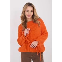 Dámský svetr s casual charakterem, ideální pro každodenní styling a práci. Standardní délka, vyrobený z měkké a příjemné směsi akrylu, polyamidu, viskózy a vlny, která zajišťuje pohodlí a teplo. Hladký vzor dodává svetru univerzální vzhled, díky čemuž je snadné ho kombinovat s různými kousky oblečení. Klasický, kulatý výstřih a dlouhé rukávy zdůrazňují nadčasový střih. Dekorativní volány s vázáním na rukávech přidávají celku ženský šarm a jemnou originalitu. Svetr nemá zapínání, co zajišťuje pohodlí a volnost nošení.