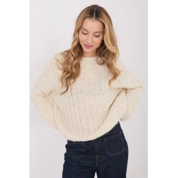 Dámský svetr s ležérním charakterem, vyrobený z materiálu s hrubým tkaním, který se skvěle hodí do chladných dní. Model ideální pro každodenní nošení i do práce, kombinující pohodlí s klasickým stylem. Hladký vzor mu dodává univerzální vzhled, a pruhovaná struktura materiálu zdůrazňuje jeho módní charakter. Svetr je vyroben z vysoce kvalitní směsi polyakrylu, polyamidu, viskózy a vlny, což zaručuje teplo, měkkost a pohodlí nošení. Standardní délka, kulatý výstřih a absenci zapínání vytvářejí nadčasový střih. Dlouhé, nafouklé rukávy dodávají celku ženský šarm a originalitu, čímž dělají ze svetru stylový prvek každodenních outfitů.