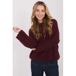 Dámský svetr s ležérním charakterem, vyrobený z materiálu s hrubým pletením, který se skvěle hodí na chladnější dny. Model ideální k nošení každý den i do práce, kombinující pohodlí s klasickým stylem. Hladký vzor mu dodává univerzální vzhled, a pruhovaná struktura materiálu zdůrazňuje jeho módní charakter. Svetr je vyroben z vysoce kvalitní směsi polyakrylu, polyamidu, viskózy a vlny, zaručuje teplotu, měkkost a pohodlí nošení. Standardní délka, kulatý výstřih a absenci zapínání vytvářejí nadčasový střih. Dlouhé, nafouklé rukávy dodávají celku ženský půvab a originalitu, činíce ze svetru stylový prvek každodenních stylizací.
