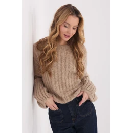 Dámský svetr s casual charakterem, vyrobený z materiálu s hrubým pletením, který se skvěle hodí do chladných dnů. Ideální model na nošení každý den i do práce, kombinující pohodlí s klasickým stylem. Hladký vzor mu dodává univerzální vzhled a pruhovaná struktura materiálu zdůrazňuje jeho módní charakter. Svetr je vyroben z vysoce kvalitní směsi polyakrylu, polyamidu, viskózy a vlny, poskytuje teplo, měkkost a pohodlí při nošení. Standardní délka, kulatý výstřih a absenci zapínání vytváří nadčasový střih. Dlouhé, nafouklé rukávy dodávají celku ženský šarm a originalitu, činí svetr stylovým prvkem každodenních outfitů.