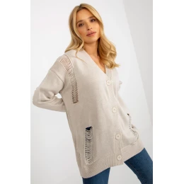 Kardigan s dlouhými rukávy a knoflíky. Svetr se srdíčkovým výstřihem a ozdobnými otvory.