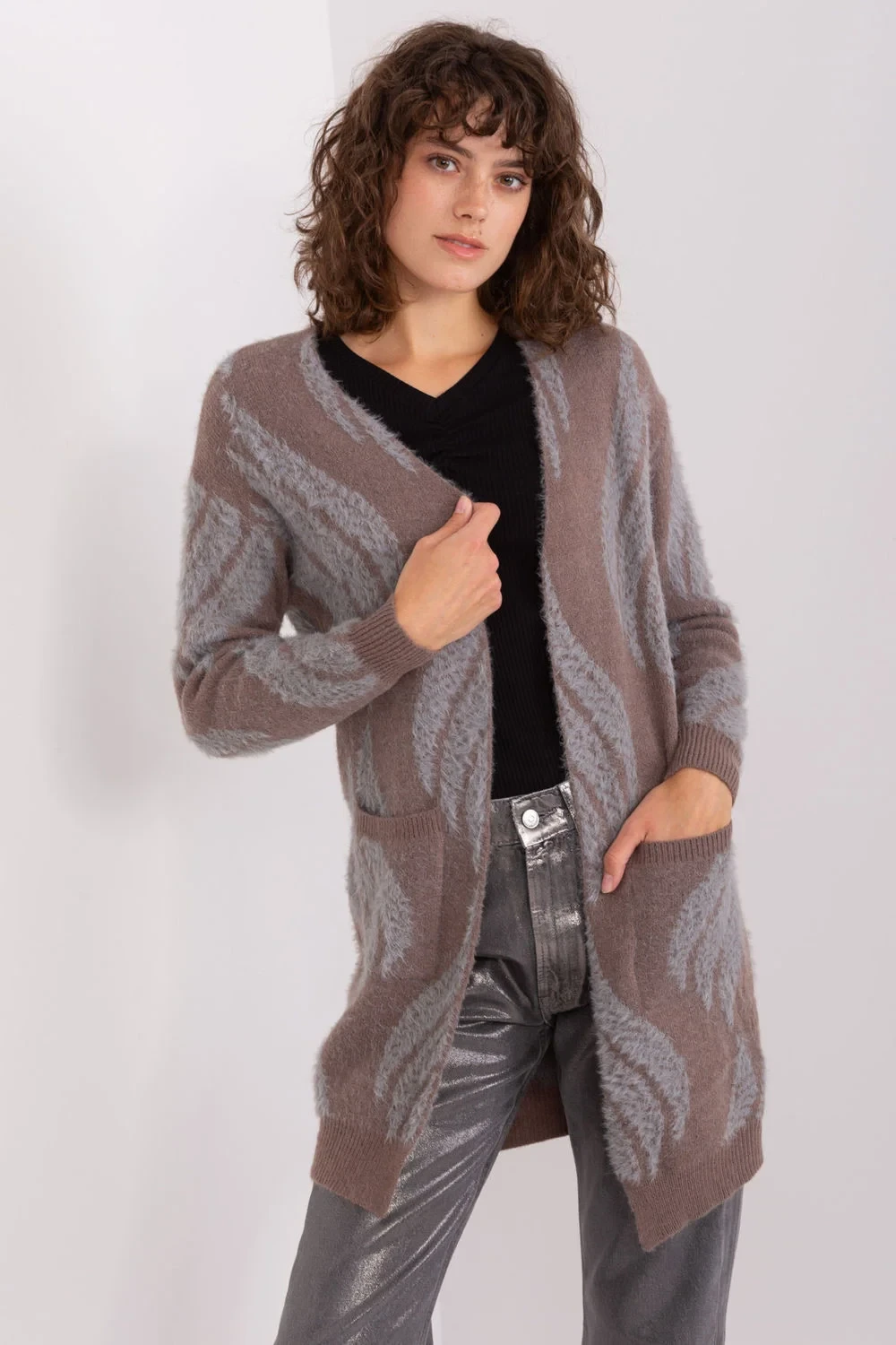 Tento svetr s přehozem je dokonalým kouskem do šatníku pro každodenní nošení. Je vyroben z pestré tkaniny, je pohodlný a módní. Dlouhý rukáv a délka sahající přes boky zajišťují teplo a pohodlí. Je to ideální kousek, který přes sebe můžete přehodit v chladnějších dnech nebo večer. Kardigan nemá zapínání, což mu dodává na ležérnosti a volnosti při nošení. Praktickým prvkem jsou navíc nakládané kapsy, do kterých si můžete uložit drobnosti nebo zahřát ruce. Je to pohodlná a módní volba, která doplní mnoho každodenních vzhledů.