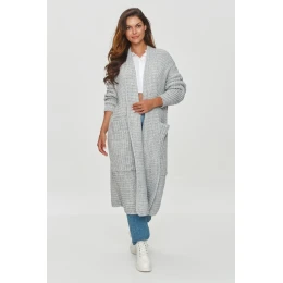 Dlouhý dámský svetr oversize je ideální pro ženy, které ocení pohodlí. Svetr sahá pod kolena, což mu dodává lehce elegantní charakter. Svetr má široké, dlouhé rukávy s žebrovanými manžetami, které umožňují nastavení délky. Materiál je příjemný, s výraznou žebrovanou vazbou, která zdůrazňuje jeho měkkost a hřejivost. Svetr nemá zapínání, což zvyšuje jeho ležérnost, stejně jako široké kapsy na bocích, které jsou praktické a stylové. Takový svetr se skvěle hodí do chladnějších dnů a je ideálním základem pro pohodlný a stylový vzhled, ať už do práce, nebo do společnosti s přáteli.
